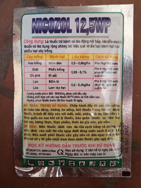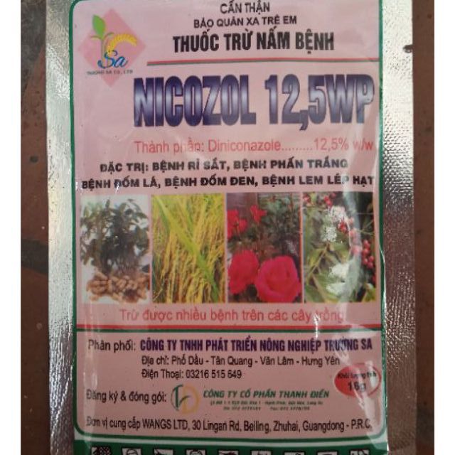 Nicozol - Đ.ặc tr ị Rỉ sắt, phấn trắng, đốm lá, đốm đen, lem lép hạtPha 16gr với 18lit nước phun đều
