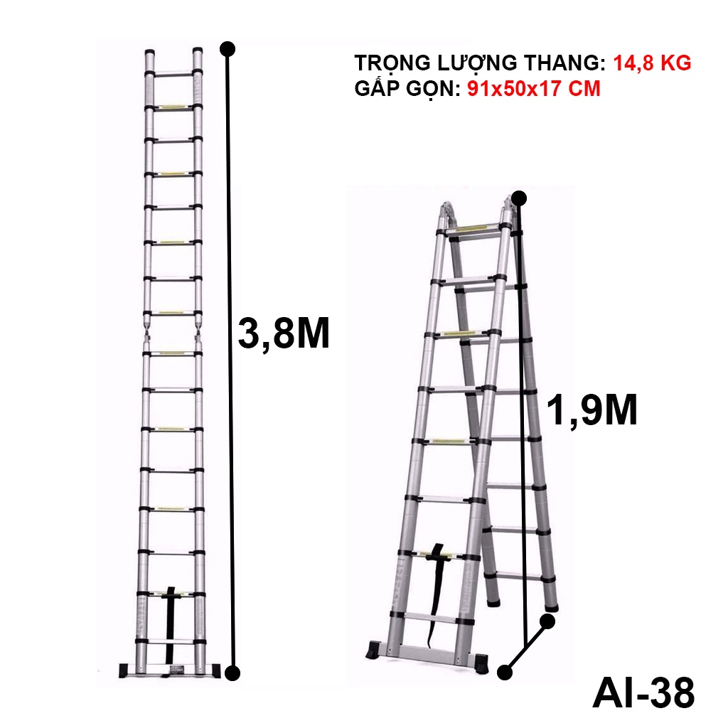 Nhà cửa & Đời sống > Dụng cụ & Thiết bị tiện ích > Thang || NIKITA - THANG NHÔM RÚT CHỮ A (1,9M + 1,9M) - AI38Còn hàng