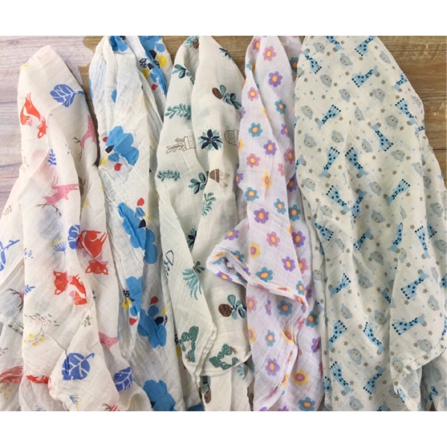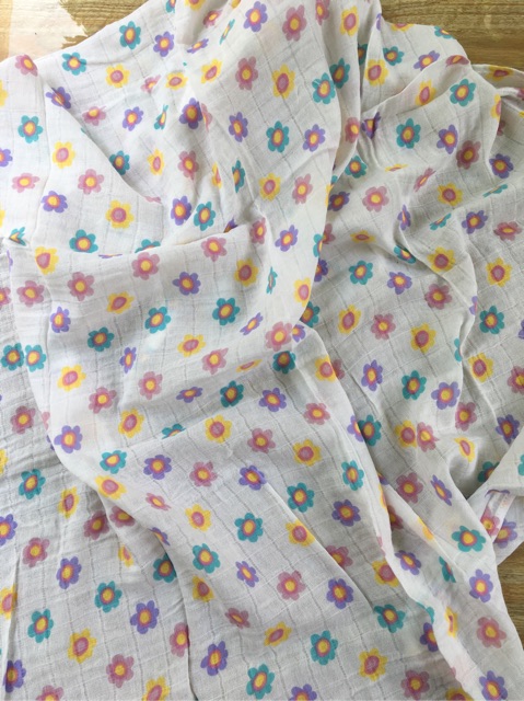 Có thể làm chăn, khăn tắm, khăn quấn, gấp làm gối cho bé, khăn che xe đẩy...