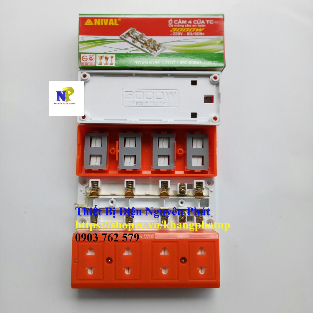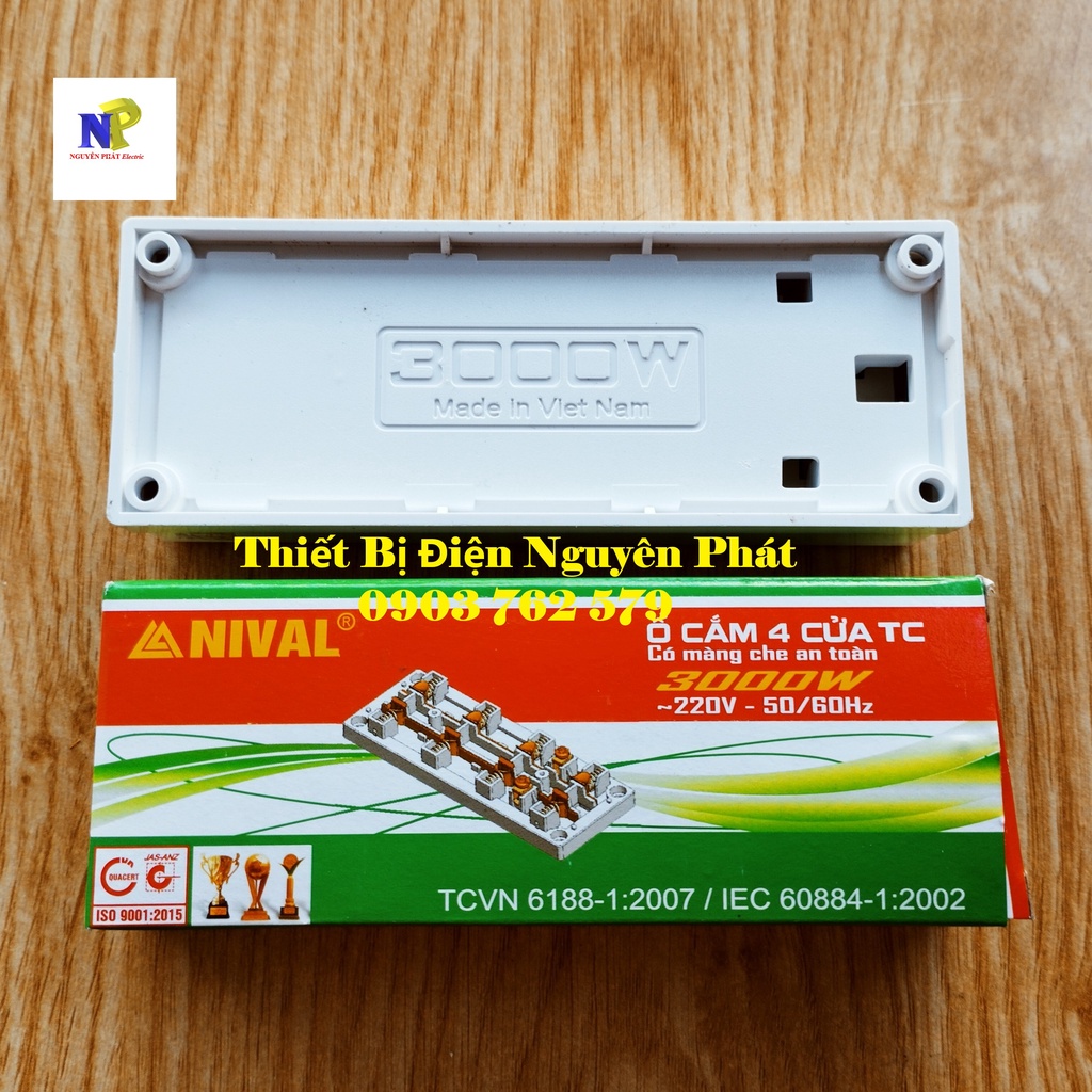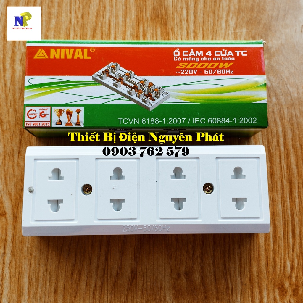 [NIVAL] Ổ Cắm Điện Có Màng Che Loại Có 4 Ổ Cắm - CS 3000w