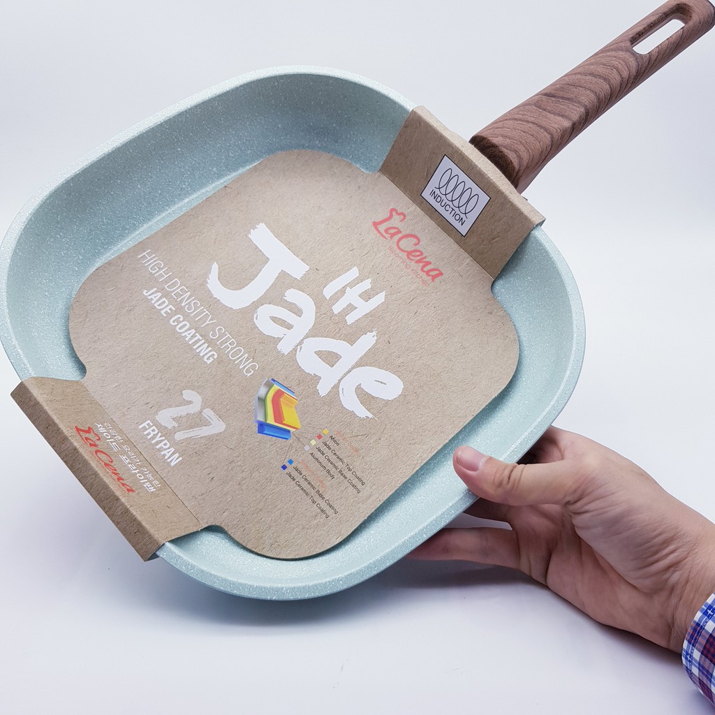 Nhà cửa & Đời sống > Dụng cụ nhà bếp > Chảo || [NK Hàn Quốc] CHẢO NƯỚNG BBQ VUÔNG CHỐNG DÍNH ceramic La cena 7 lớp, 27 cm, màu mint (hàng có bán tại Aoen mall)Còn hàng