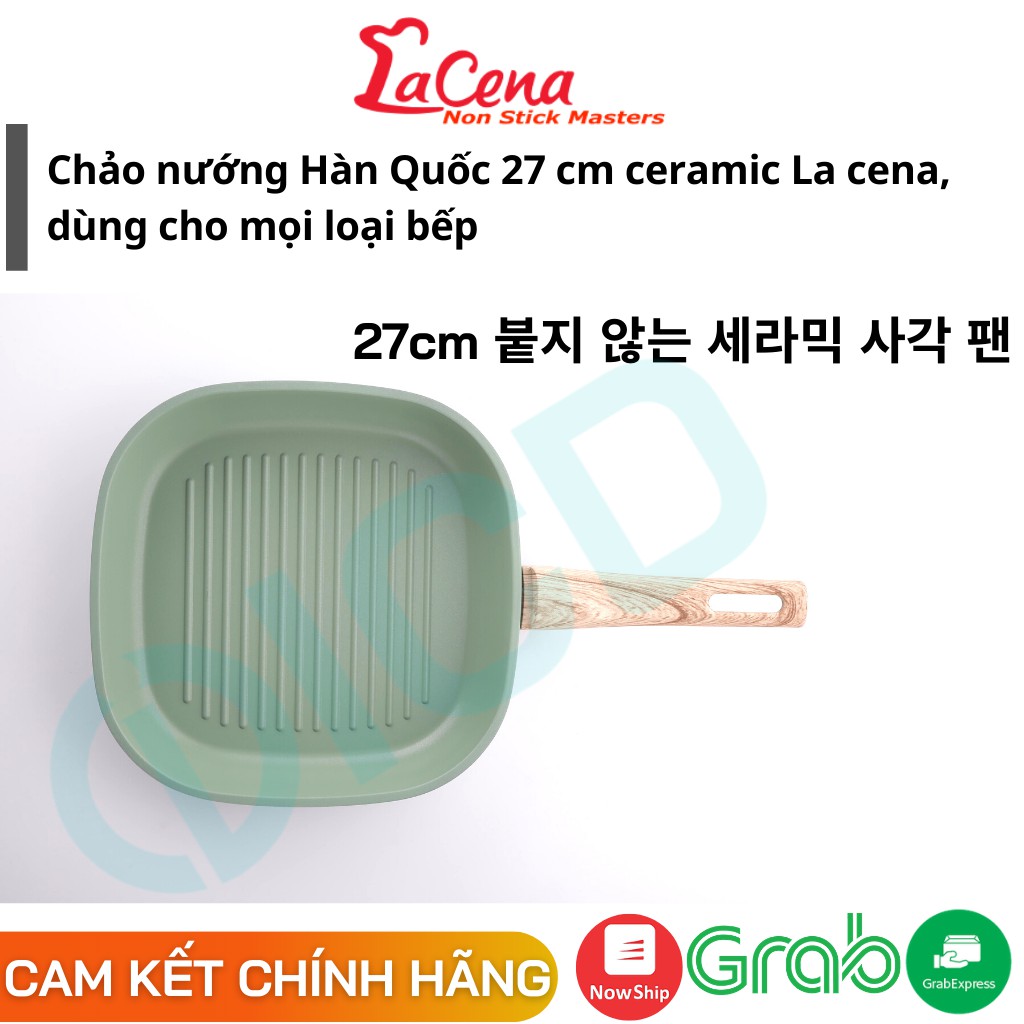 [NK Hàn Quốc] CHẢO NƯỚNG BBQ VUÔNG CHỐNG DÍNH ceramic La cena 7 lớp, 27 cm, màu mint (hàng có bán tại Aoen mall)
