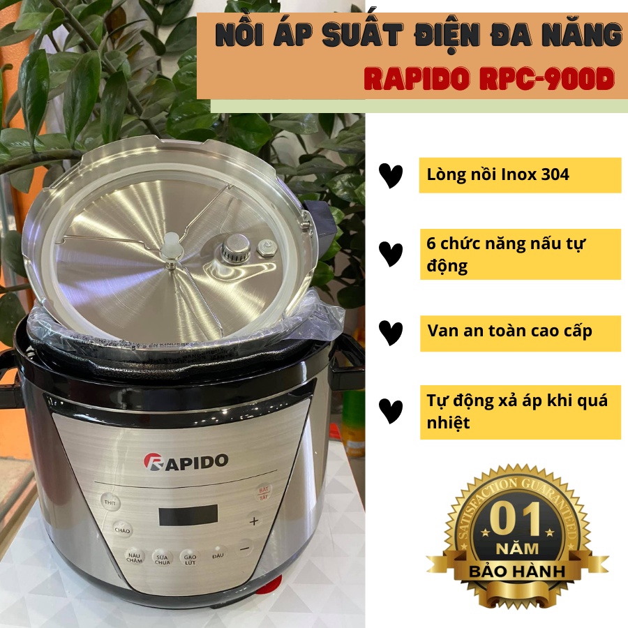 Giới thiệu [Mã ELHADEV giảm 4% đơn 300K] Nồi áp suất điện đa năng Rapido RPC900-D 5L