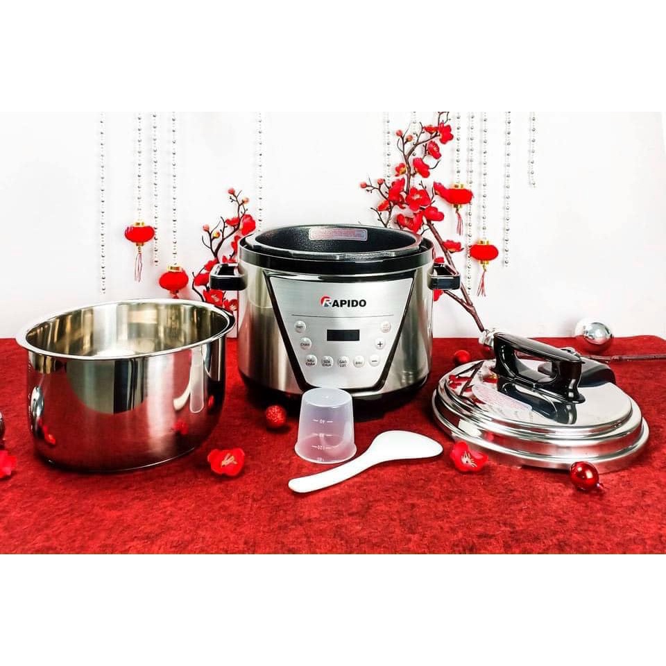 Nồi áp suất điện đa năng Rapido RPC900-D 5L , Nấu cơm, Nấu cháo, Hầm tiện lợi- Bảo hành chính hãng 12 tháng