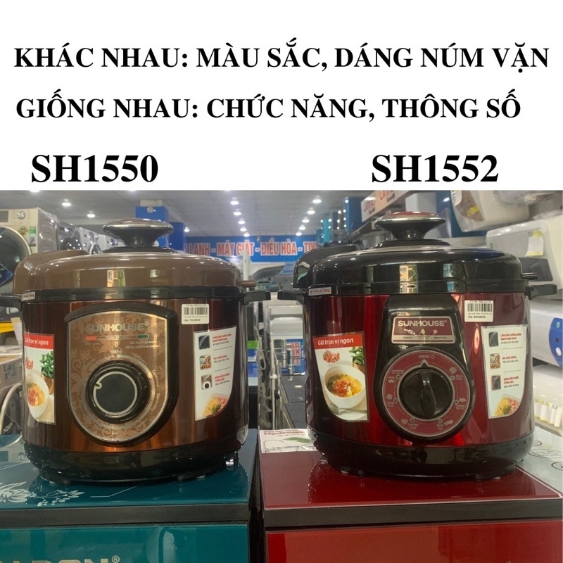 Thiết Bị Điện Gia Dụng > Đồ gia dụng nhà bếp > Nồi áp suất || [Mã 273ELHA100K0 hoàn 7% đơn 500K] NỒI ÁP SUẤT ĐIỆN SUNHOUSE 1552/ SH1550Còn hàng