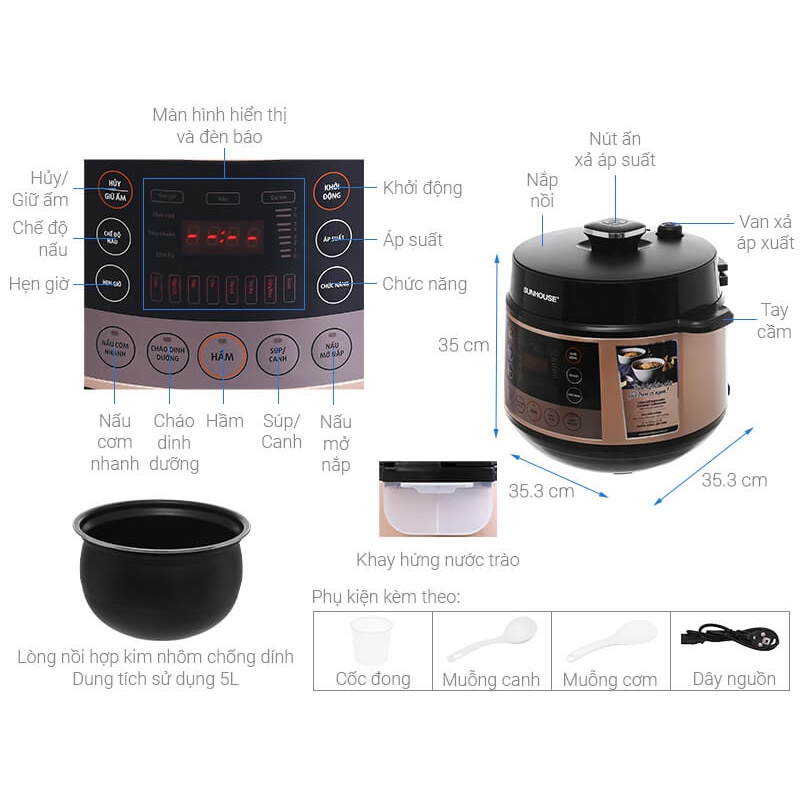 Thương hiệu: Sunhouse | Xem thêm các sản phẩm Nồi áp suất của SunhouseMô tả ngắn
