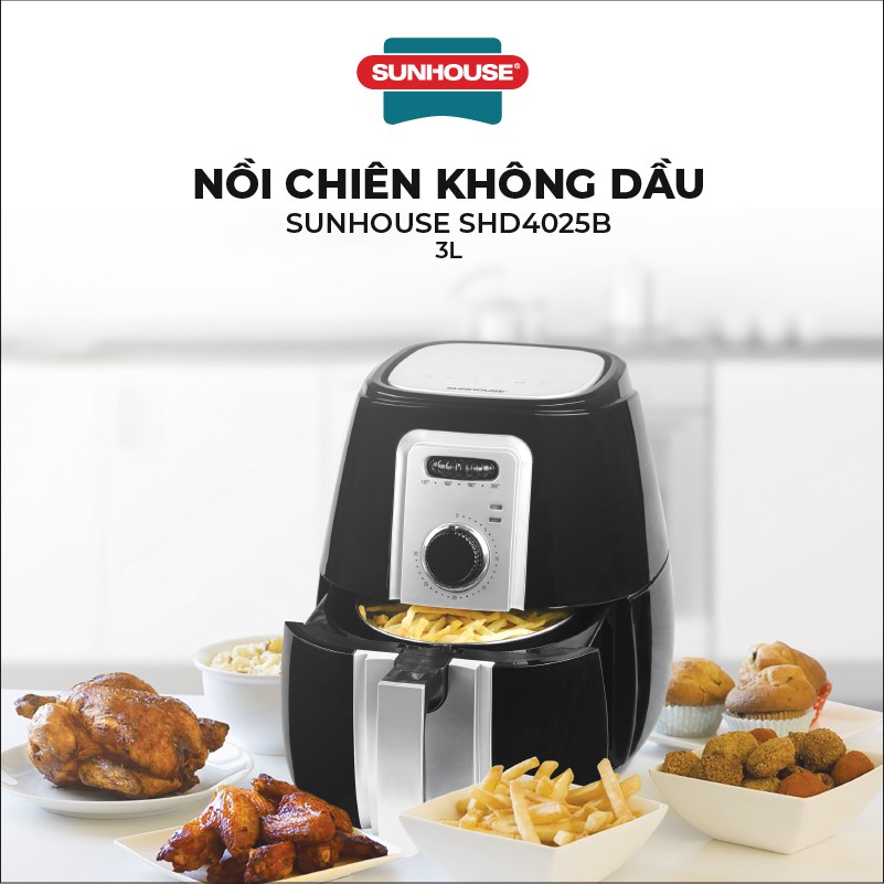 Thiết Bị Điện Gia Dụng > Đồ gia dụng nhà bếp > Nồi chiên không dầu || [Mã 273ELHA100K0 hoàn 7% đơn 500K] Nồi chiên không dầu 3.0L Sunhouse SHD4025B đenCòn hàng