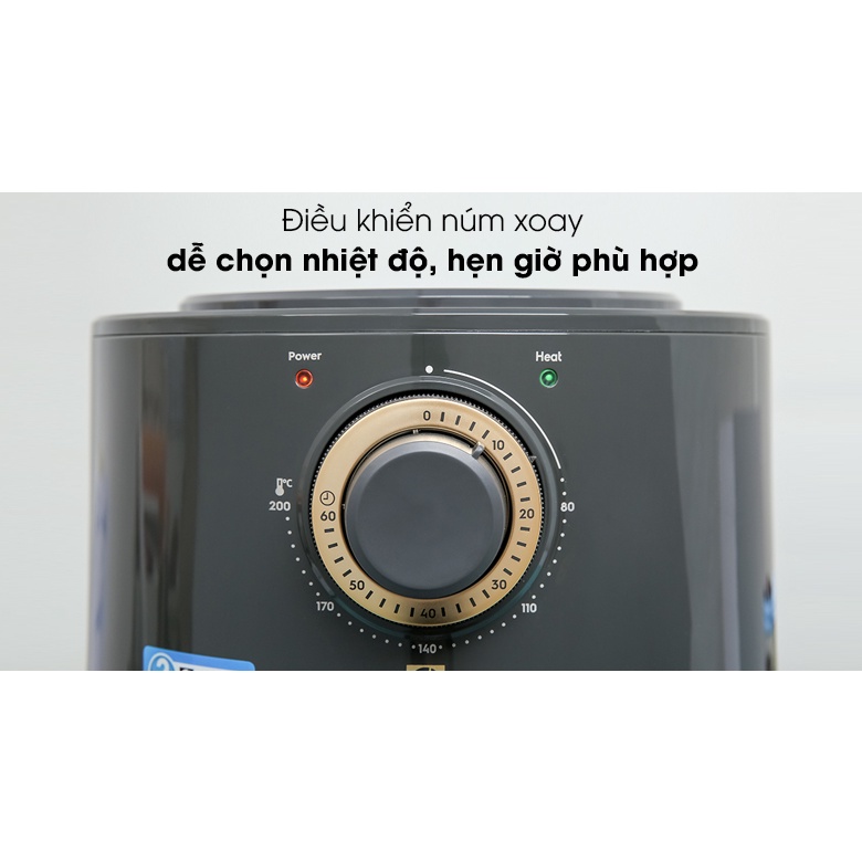Điều khiển thân thiện với núm xoay, chọn nhiệt từ 80 - 200 độ C, hẹn giờ 0 - 60 phút linh hoạt
