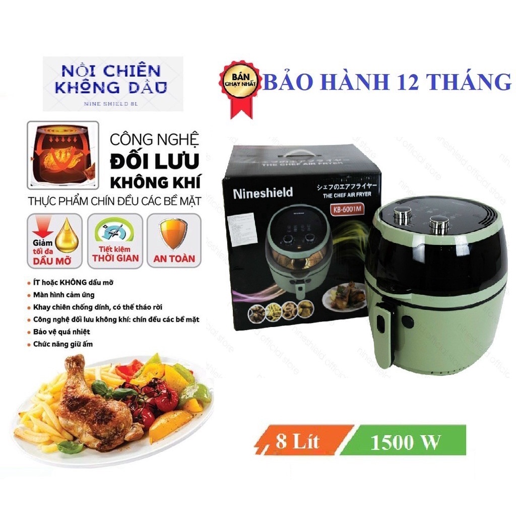 🥘🥘 NỒI CHIÊN KHÔNG DẦU ĐIỆN CƠ NINE SHIELD 8L