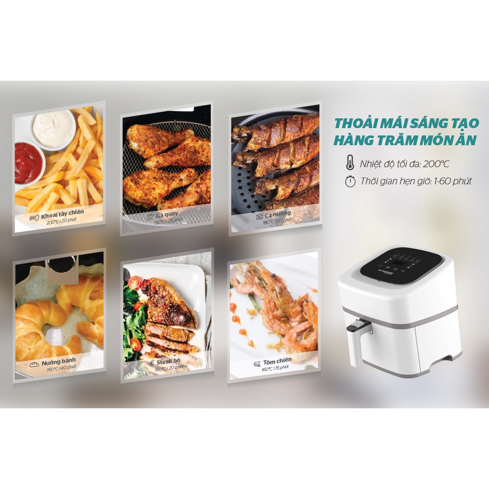 Nồi Chiên Không Dầu SUNHOUSE Dung Tích 3L SHD4023WTHIẾT KẾ - KIỂU DÁNG :