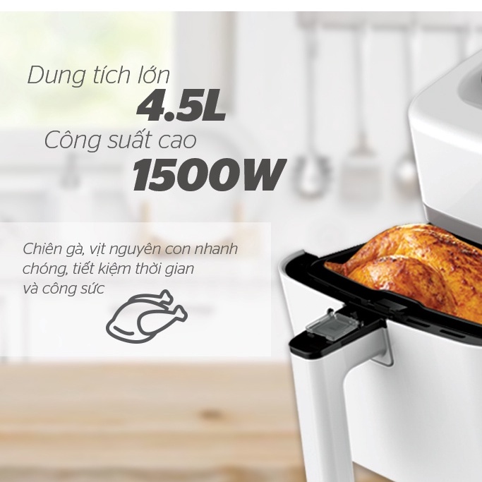 Tích hợp công nghệ hiện đại trong một sản phẩm nhỏ gọn cho bạn và gia đình một phương thức nấu ăn mới nhanh chóng – tiện lợi và gọn gàng hơn. Quan trọng nhất, thực phẩm chiên với nồi chiên không dầu có màu vàng giòn, thơm ngon hơn so với cách chiên dầu truyền thống.
