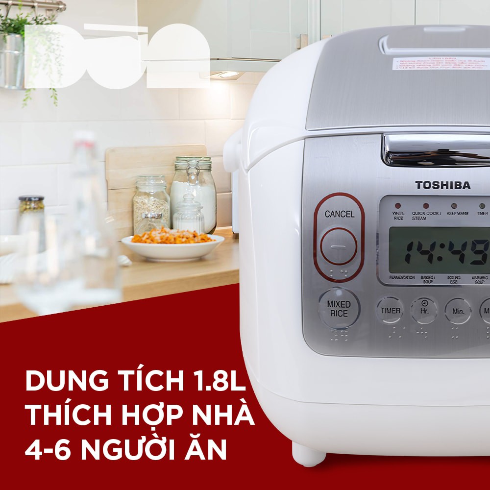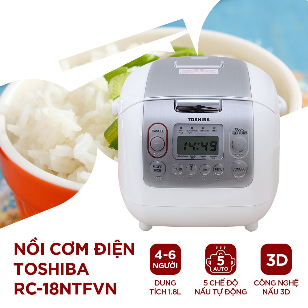 Nồi cơm điện tử Toshiba 1.8 lít RC-18NTFVN(WT) đến từ thương hiệu Toshiba - Nhật Bản, chất lượng tốt, nấu cơm ngon, bền bỉ.Đặc điểm nổi bật: