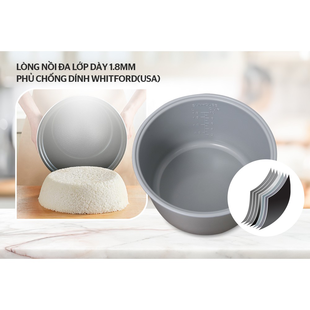 [Mã ELHADEV giảm 4% đơn 300K] Nồi cơm điện 1.8L SUNHOUSE SHD8662