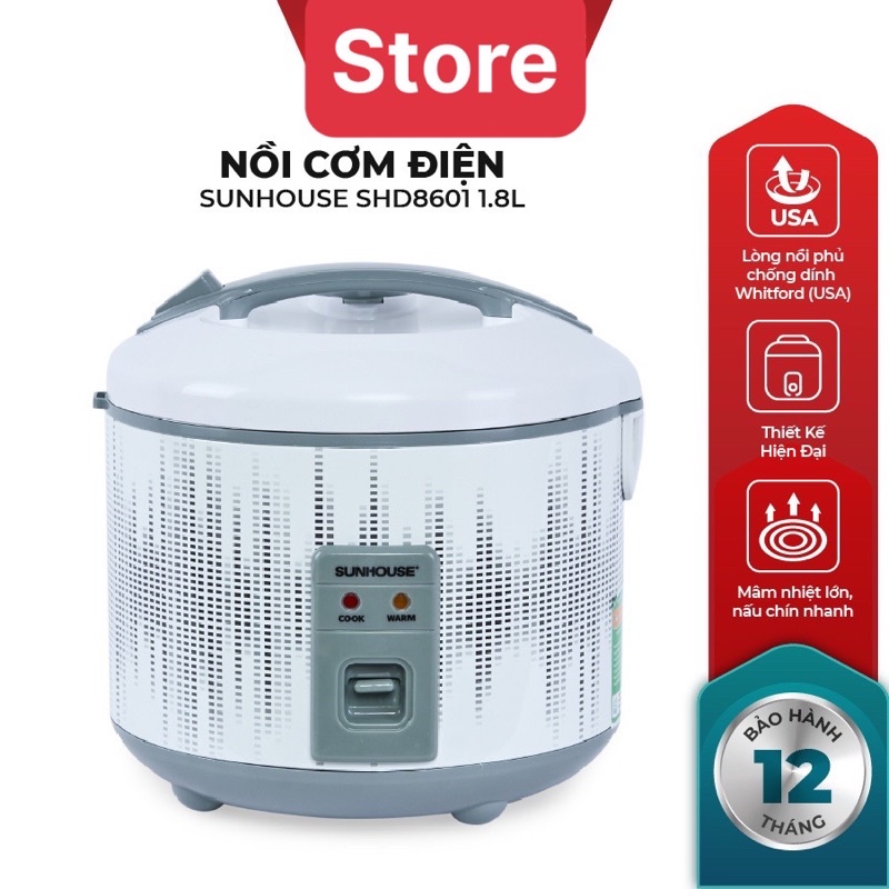 Nồi cơm điện 1.8L Sunhouse SHD8601 chính hãng bảo hành 12 tháng