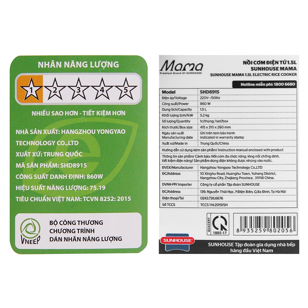 Nồi cơm điện Sunhouse mama 1.5 lít SHD8915 thiết kế hiện đại, nhiều chức năng, dùng tốt, chất lượng vượt trội mà giá mềm bất ngờ, là sản phẩm nên có trong mọi nhà.