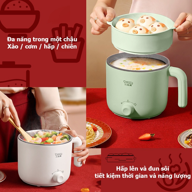 Nồi Lẩu Điện Mini Đa Năng HM-60C-3 Lotor 1,3 Lít, nồi nấu lẩu, cơm giữ nhiệt cho 1 - 2 người lớp chống dính