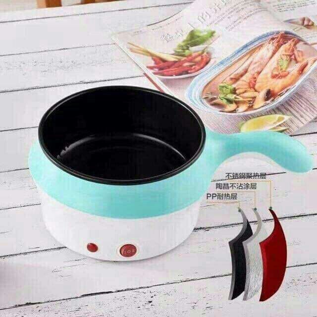 Nồi lẩu kèm hấp tay cầm size 18cm- Nồi điện dùng để nấu mì, nồi lẩu điện mini có 2 lớp: Lớp trong là inox, lớp ngoài là nhựa chống nóng dùng cá nhân 1-2 người, dùng để nấu canh, đun nước sôi, nấu mì, hấp đồ ăn...