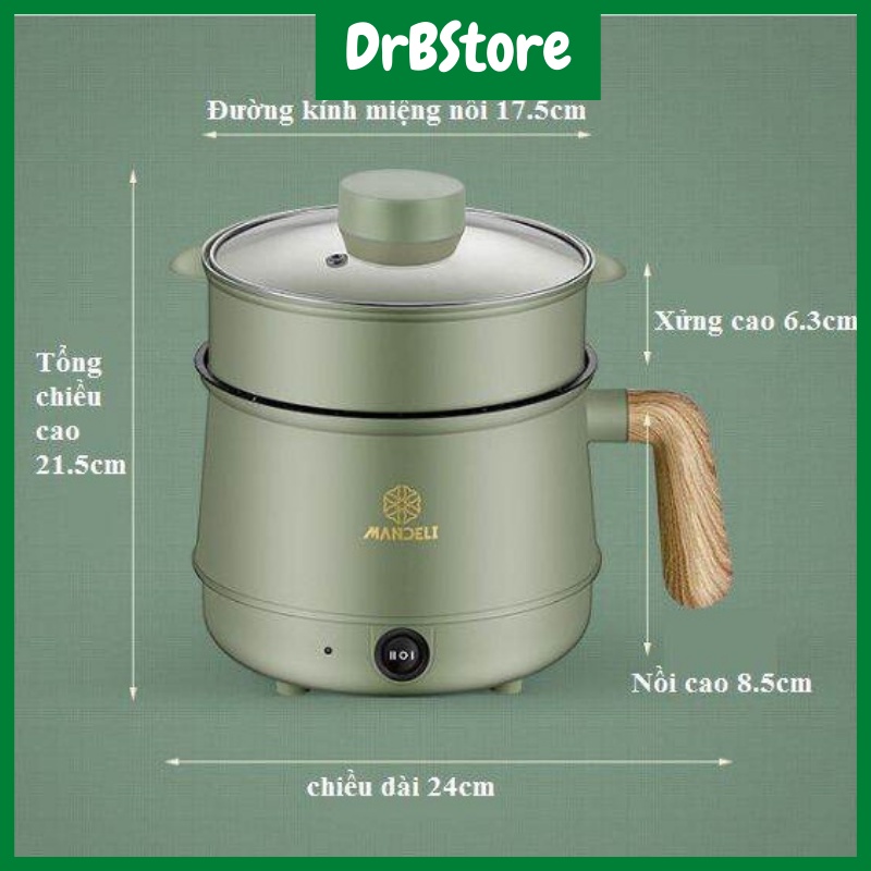 Nồi lẩu điện mini đa năng 2 tầng Mandeli 1,6L kèm giá hấp Ca nấu mì, nấu cơm cầm tay DrbStore