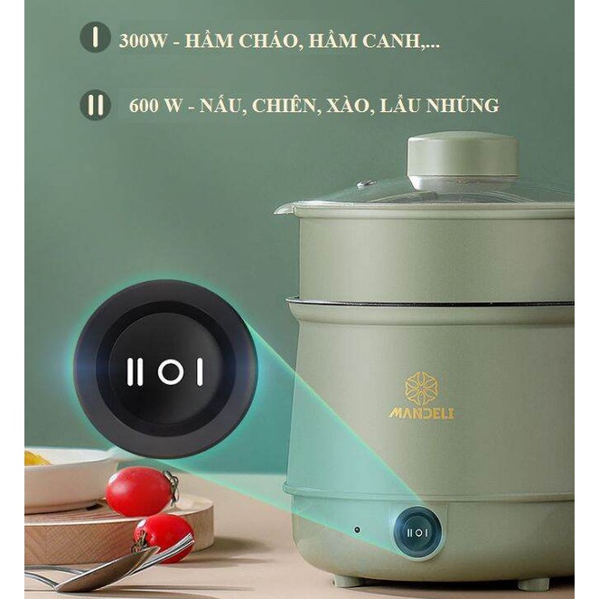 Nồi lẩu điện mini đa năng 2 tầng Mandeli 1,6L Ca nấu mì, nấu cơm cầm tayTHÔNG TIN SẢN PHẨM