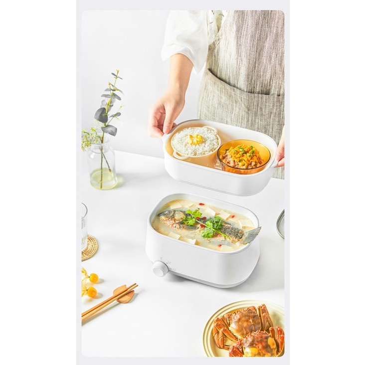 Nồi lẩu điện mini Olayks đa năng dung tích 1.8L tặng vỉ hấp