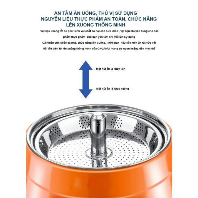 Nồi lẩu điện thang máy BESUTO BST-045 có thể nâng đồ ăn lên, hạ đồ ăn xuống.Công suất: 1800W.