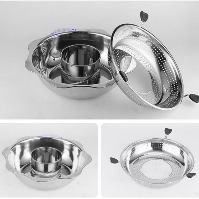 Nồi lẩu xoay 2 tầng Inox 304 tiện dụng chống cháy khét, nồi ăn lẩu dung tích lớn