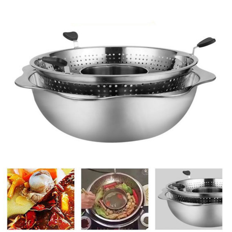 Nhà cửa & Đời sống > Dụng cụ nhà bếp > Nồi || Nồi lẩu xoay 2 tầng Inox 304 tiện dụng chống cháy khét, nồi ăn lẩu dung tích lớnCòn hàng