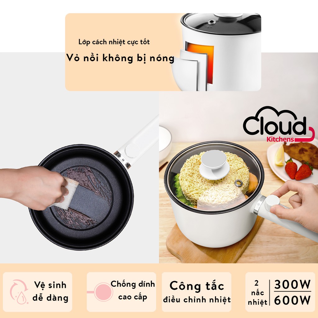 Nồi Lẩu Mini đa năng Cloud Kitchens, 2 Nấc Nhiệt, Nồi Nấu Mì mini 1.5L, Ca nấu lẩu, Chống Dính Cao Cấp Chính Hãng