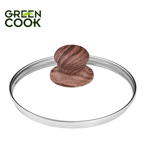 Nắp kính cường lực với núm vân gỗ, cùng tay cầm cách nhiệt phủ vân gỗ chắc chắn, an toàn khi sử dụng