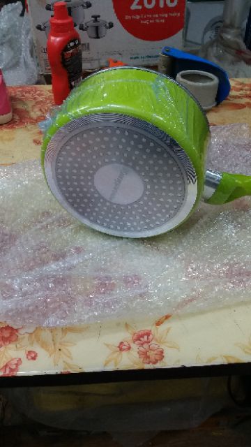 >>> Bề mặt nồi được phủ lớp chống dính đá hoa cương siêu bền, tiết kiệm dầu khi nấu ăn, dễ vệ sinh. Nồi bằng hợp kim nhôm có độ dày gần 2.6 mm, giúp giữ nhiệt tốt cho thức ăn.