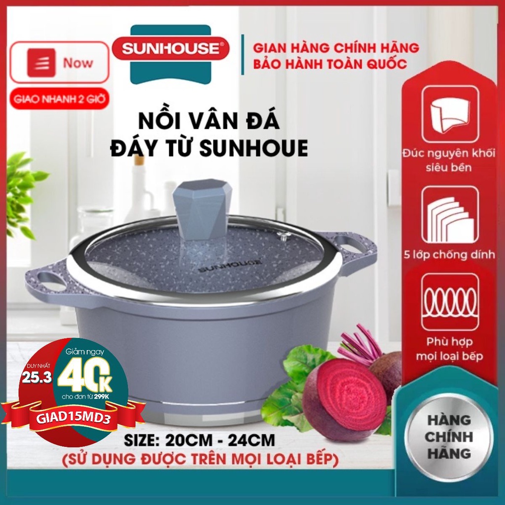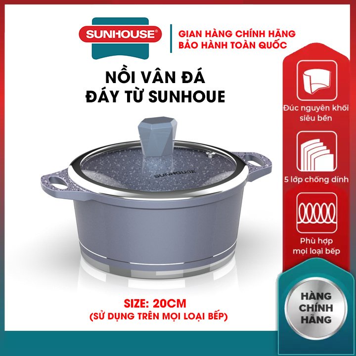 Nhà cửa & Đời sống > Dụng cụ nhà bếp > Nồi || Nồi vân đá đáy từ 5 lớp chống dính SUNHOUSE 20 24 CM đúc nguyên khối siêu bền phù hợp mọi loại bếpCòn hàng