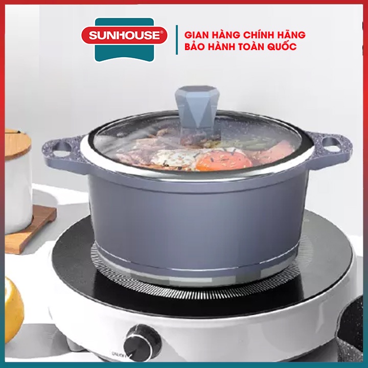 Nồi vân đá đáy từ 5 lớp chống dính SUNHOUSE SHG2020MMA-SHG2024MMA-2022 kích thước 20 24 CM đúc nguyên khối siêu bền