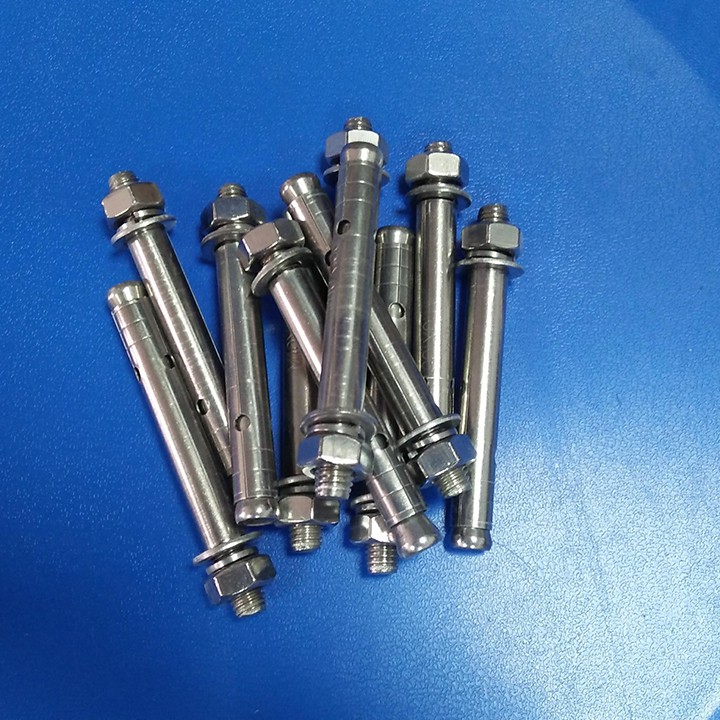 Cứ như vậy, nếu liên kết cần bao nhiêu bu lông nở inox 304 thì quy trình thực hiện bấy nhiêu lần, khoảng cách giữa các bu lông phải đảm bảo giống khoảng cách của các lỗ chờ đã khoan đã được định sẵn trên kết cấu.