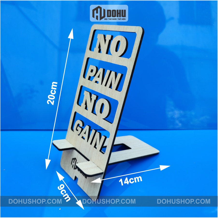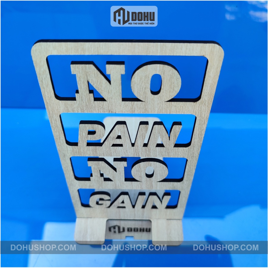[No Pain No Gain] Giá đỡ điện thoại bằng gỗ kết hợp tranh slogan để bàn - Độc Lạ