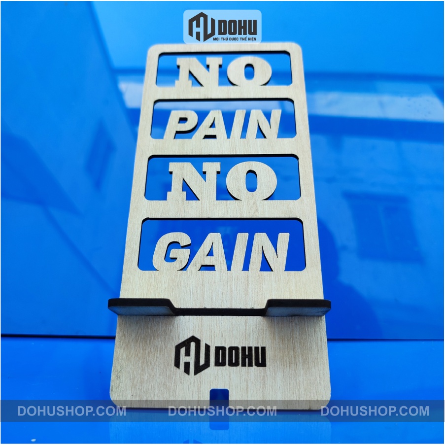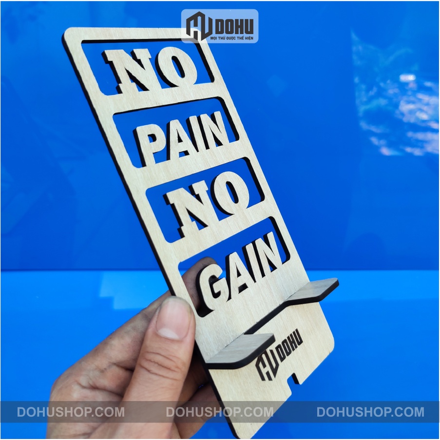 Giới thiệu [No Pain No Gain] Giá đỡ điện thoại bằng gỗ kết hợp tranh slogan để bàn - Độc Lạ