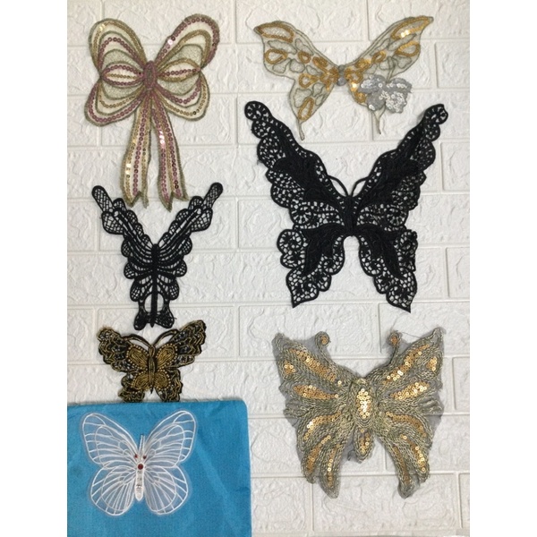Sở thích & Sưu tầm > Dụng Cụ May Vá || Nơ và bướm đính kim sa, đá ,cườm dùng để trang trí áo.Còn hàng
