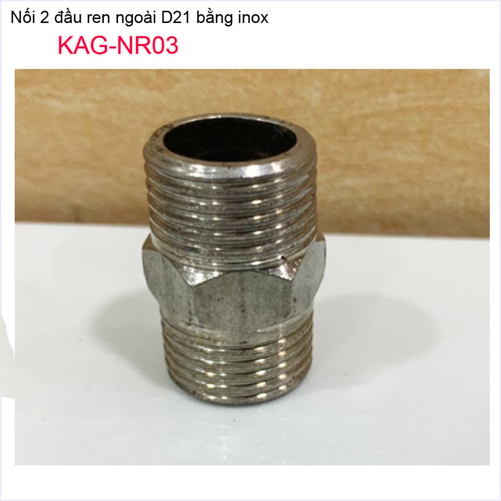 Giới thiệu Nối 2 đầu ren ngoài D21 Nixcor KAG-NR03, Đầu nối ren ngoài inox-kép nối inox ren D21