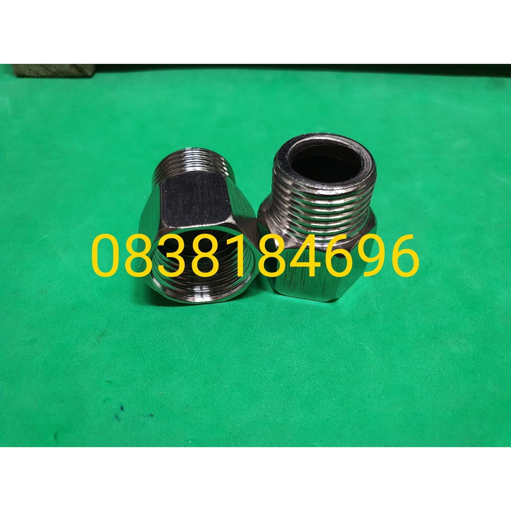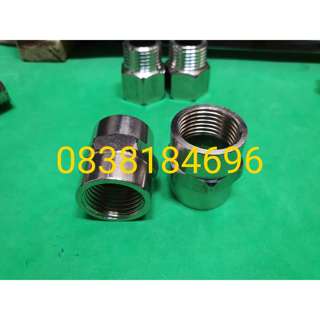 1.Nối 2 Đầu Ren Trong 21 Răng Ngoài 27 - Inox không gỉ.