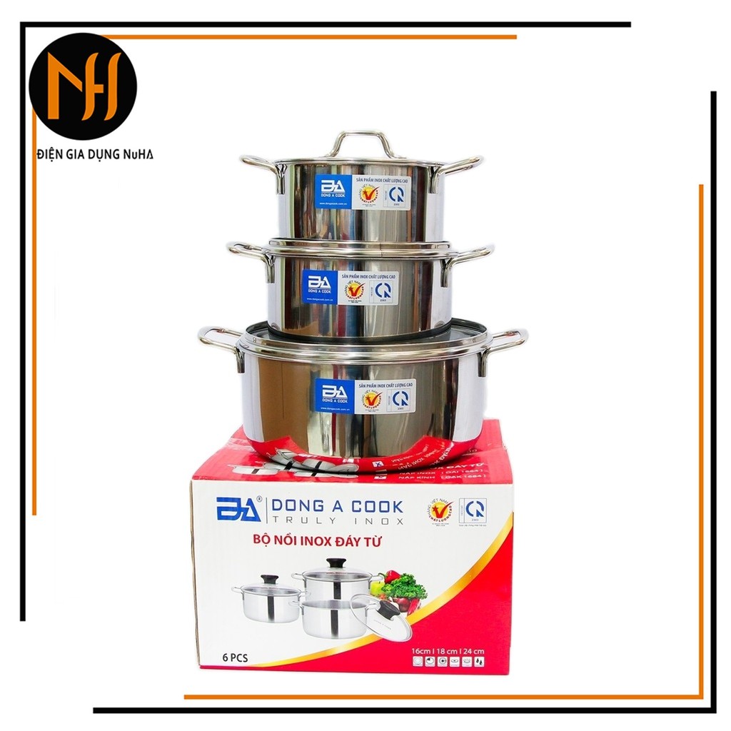 Bộ nồi 3 cái đáy từ ĐÔNG Á nắp inox kích thướt 16cm,18cm, 24cm, sử dụng trên tất cả loại bếp