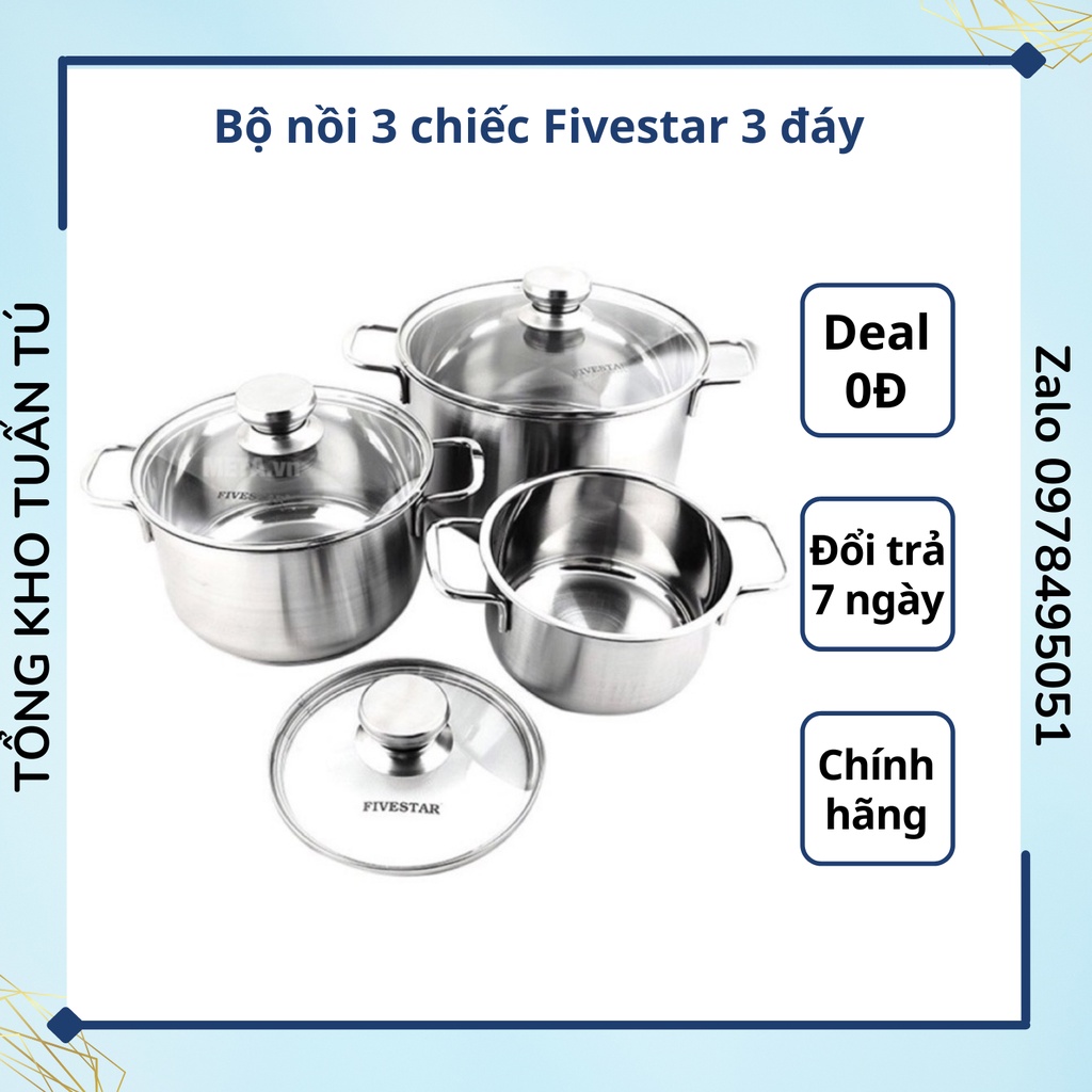 Bộ nồi 3 chiếc Fivestar FS06CG inox cao cấp 3 kích cỡ hàng chính hãng