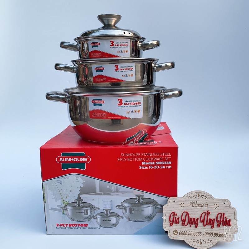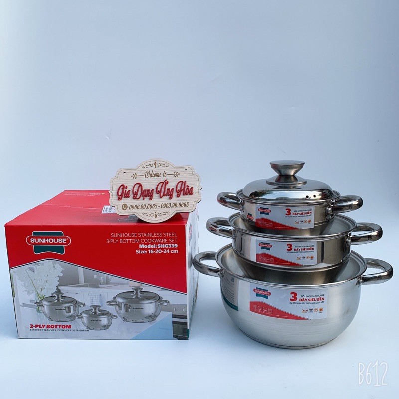 Nhà cửa & Đời sống > Dụng cụ nhà bếp > Nồi || Bộ Nồi 3 Đáy Cao Cấp Bếp Từ Sunhouse SH339Còn hàng