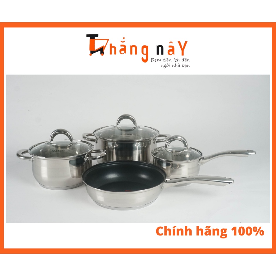 Đặc điểm :Bộ nồi Faster Daily gồm bộ 3 nồi, 1 chảo với chất liệu inox 304 cao cấp, các kích cỡ khác nhau sẽ giúp bạn chế biến được nhiều món ăn ngon cho cả gia đình như món kho, món hấp, hầm, chiên,…Sản phẩm thiết kế tinh tế và thanh lịch với vung kính tiện lợi, dễ dàng quan sát thực phẩm bên trong, nồi 3 đáy dày dặn, nấu trên mọi loại bếp, an toàn cho sức khỏe người sử dụng và dễ dàng vệ sinh.