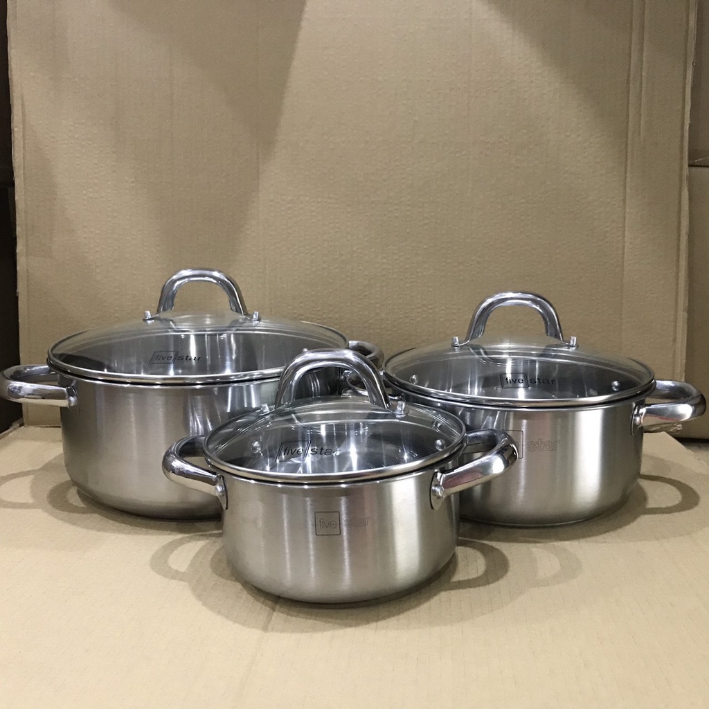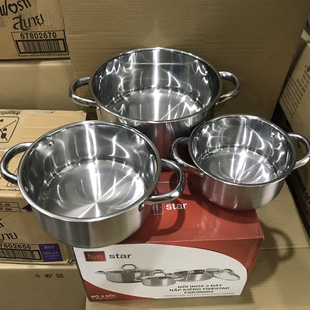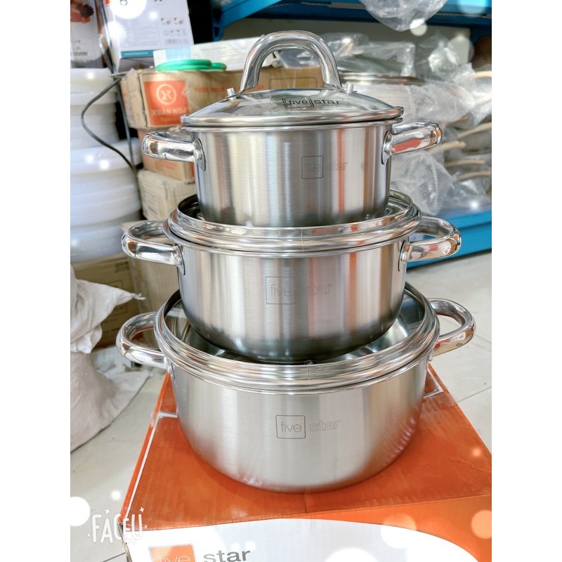 Nhà cửa & Đời sống > Dụng cụ nhà bếp > Nồi || Bộ nồi 3 đáy Five Star nắp kính mẫu mới quai tán đinh siêu chắc chắnCòn hàng