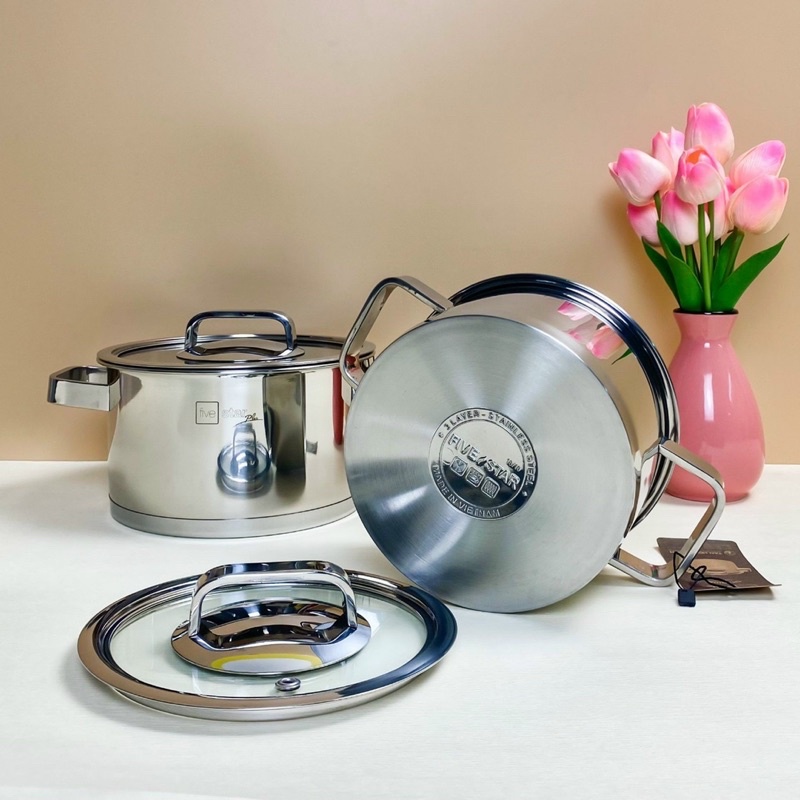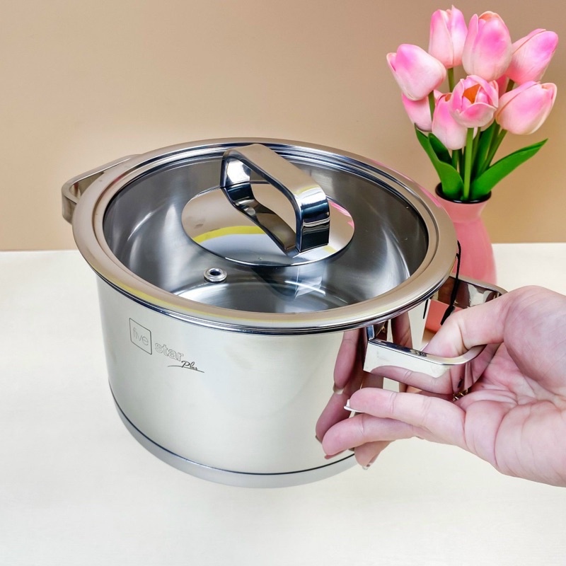 Nồi 3 Đáy Inox 304 Fivestar Bếp Từ Nắp Kính ( 16cm/20cm/24cm ) Cao Cấp Sang Trọng - BH Chính Hãng
