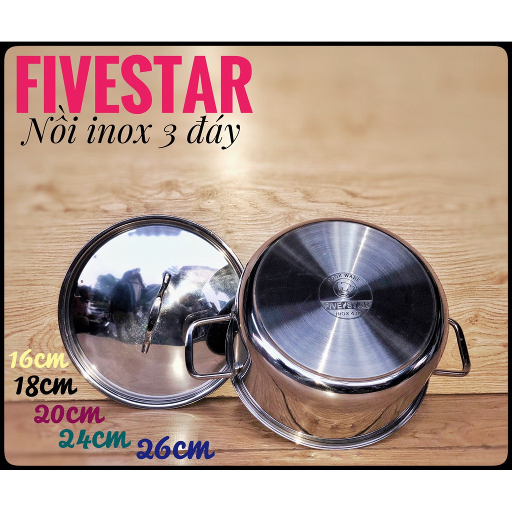 Nồi 3 Đáy Inox 430 Fivestar 24cm Dùng Cho Bếp Từ FSN24012Thương hiệu: Fivestar - Tân Hợp Thành