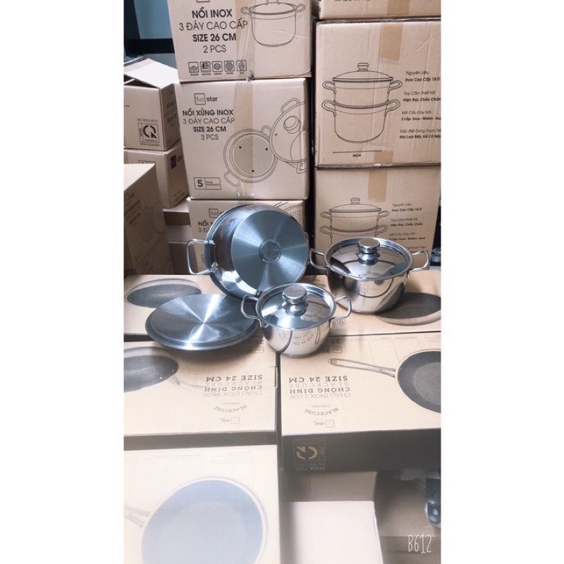 Nhà cửa & Đời sống > Dụng cụ nhà bếp > Nồi || Bộ nồi 3 đáy inox 430 Thân Cool Fivestar Standard nắp inox FS-B3010 (Kích thước 16cm - 20cm - 24cm)Còn hàng