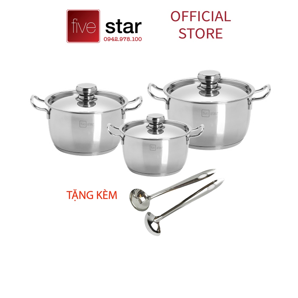 Bộ nồi 3 đáy inox 430 Thân Cool Fivestar Standard nắp inox FS-B3010 (Kích thước 16cm - 20cm - 24cm), tặng 2 vá canhThương hiệu: Fivestar