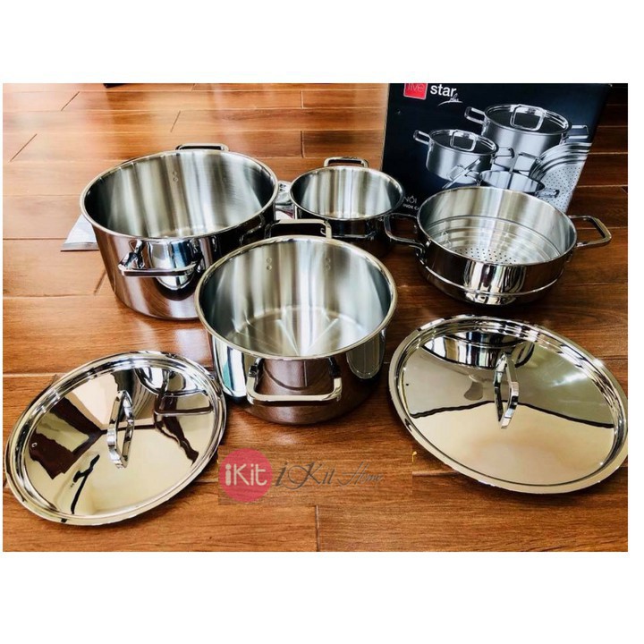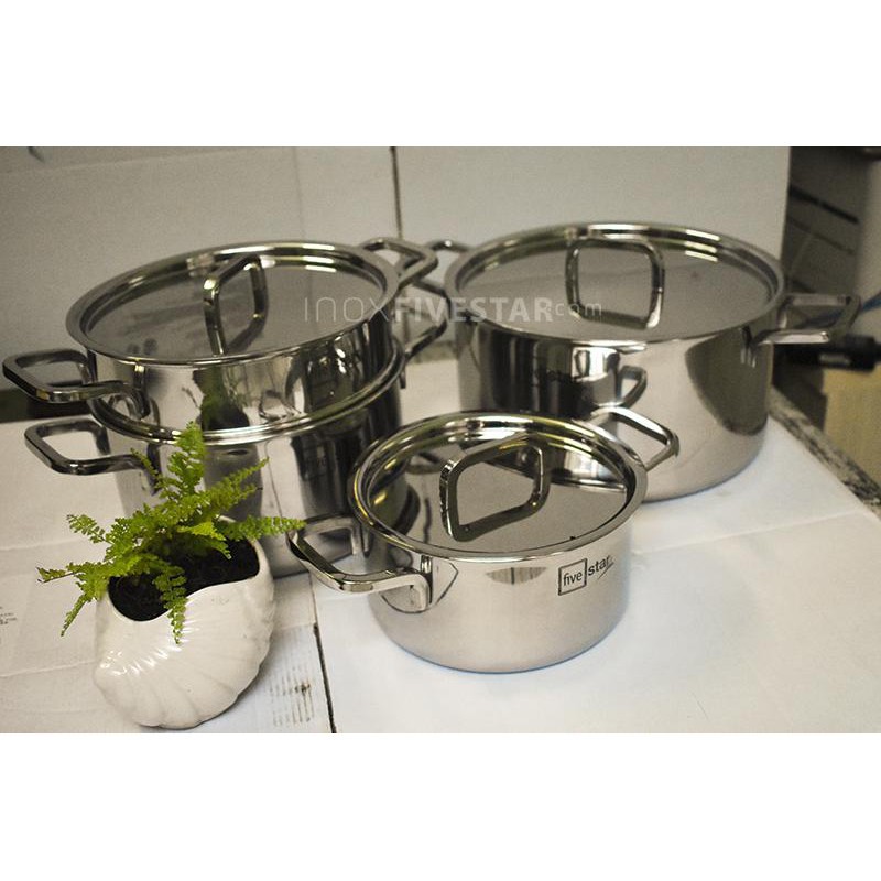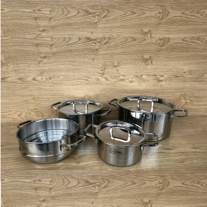 Nhà cửa & Đời sống > Dụng cụ nhà bếp > Nồi || Bộ nồi 3 đáy liền thân inox 304 Fivestar Plus bếp từ nắp inox ( 1 nồi 16cm x 1 bộ nồi xửng 20cm x 1 nồi 24cm )Còn hàng