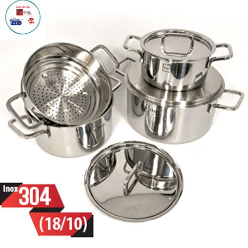 ✔️Nồi 16cm + 1 nồi 20cm + 1 nồi 24cm và 1 chõ hấp 20cm.