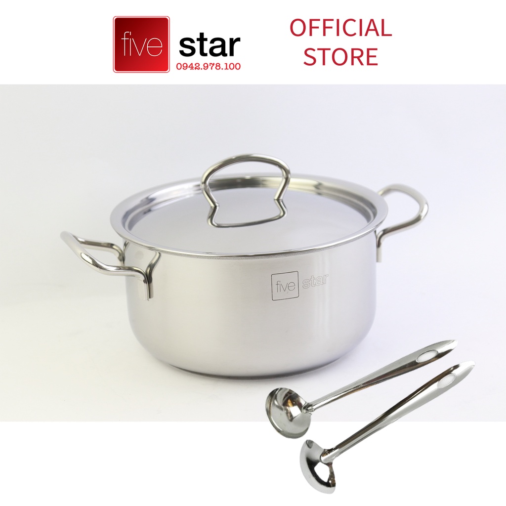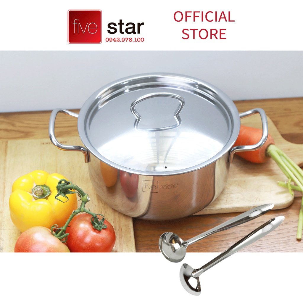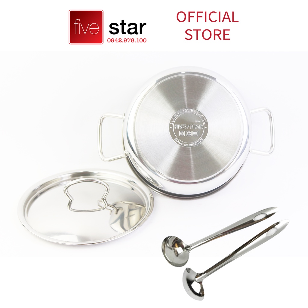 Nồi 3 đáy sandwich inox 430 FiveStar Standard bếp từ nắp inox tặng 2 muỗng canh ( 16cm / 18cm / 20cm / 24cm )